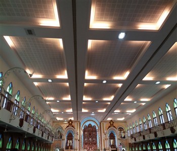 ...... | Ceiling Designing of churches Designing ceilings of new or existing christian churches and worship centers is a speciality of Madonna ceiling decoration. No other building expresses a congregation’s feelings towards God more than the church/worship center. Whether we are working on an existing space or designing a new space, our focus is on creating a functional worship space that is consistent with the vision and values of the church community. Ceilings of church should be simple and it should provide sound proofing and we understand this more than anyone else. |