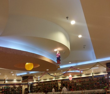 ...... | Commercial Buiding Ceiling When designing the interior of commercial buildings, we often tend to ignore the ceiling design. We usually just paint it white and don’t think twice about any other options. We focus more of the walls and on the floor. But the ceiling is very important and can radically change the whole design in a room. We do ceiling designing of hotels, restaurents, hospitals, schools and colleges, hyper markets, textile shops etc. When you want to repair or renew your office or shops, so you should choose one of stylish ceiling designs and ideas. There are many of gypsum ceiling catalogue and pop design catalogue but you don't find unique ideas and designs for ceiling ? so you are in the best place to see the newest pop ceiling design . |